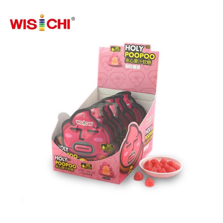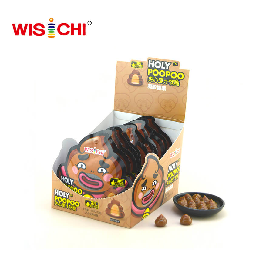 For this special 3D poopoo shape gummy candy, we have our own exporting brand called “POLY POOPOO”. This item is good selling for convenience stores and supermarkets! We support OEM and OEM services and great welcome to help customer to develop some special and creative new products! Guangdong Wisky Foods Co. Ltd. professional and experienced team can also help you to do candy and packaging design to win your market.