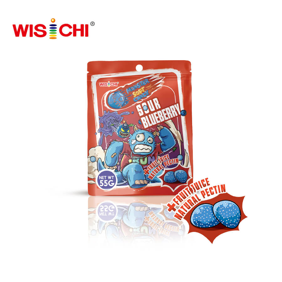 At present, more and more people have awareness of health preservation or have gone on the road of health. The vegetable jelly introduced by Guangdong Wisky Foods Co., Ltd. This time is more in line with the health of young people under the general health environment. The creative item that Guangdong Wisky Foods Co., Ltd. is launched is pectin soft candy, natural colloid and healthy. Today you can found most candies on the market are sweet, however we made sour flavors to attract customers. This is a good casual refreshing experience. Existing we make two colors and flavors: the blue color is sour blueberry flavor and pink one is strawberry flavor. Each piece is around 2.5g with sour sweet sugar coating. If you don’t like the existing color and flavour, we warmly welcome to get your idea to create the color and flavour as you like! High quality nice tasting candy pack in high quality stand up zipper foil bag, this is a good selection for you!
