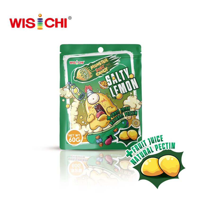 The new item that Guangdong Wisky Foods Co., Ltd. was launched is pectin soft candy, natural colloid and healthy. At present, most candies on the market are sweet, however we made savory flavors to attract customers. This is a good casual refreshing experience. Existing we make two colors and flavors: the green color is salty green plum flavor and yellow one is salty lemon flavor.